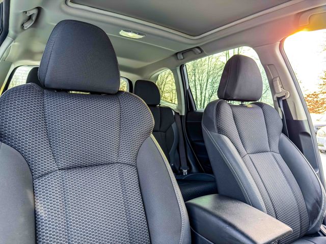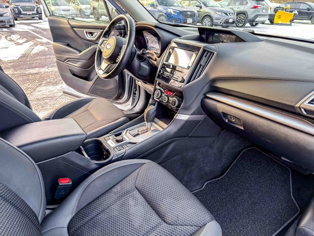 Equipped with Subarus renowned safety and capability, this Forester features EyeSight Driver Assist Technology, pre-collision braking, blind spot detection, and rear cross-traffic alert for added peace of mind. Visibility is enhanced with auto high-beam headlights, front fog lights, and fully automatic headlights.